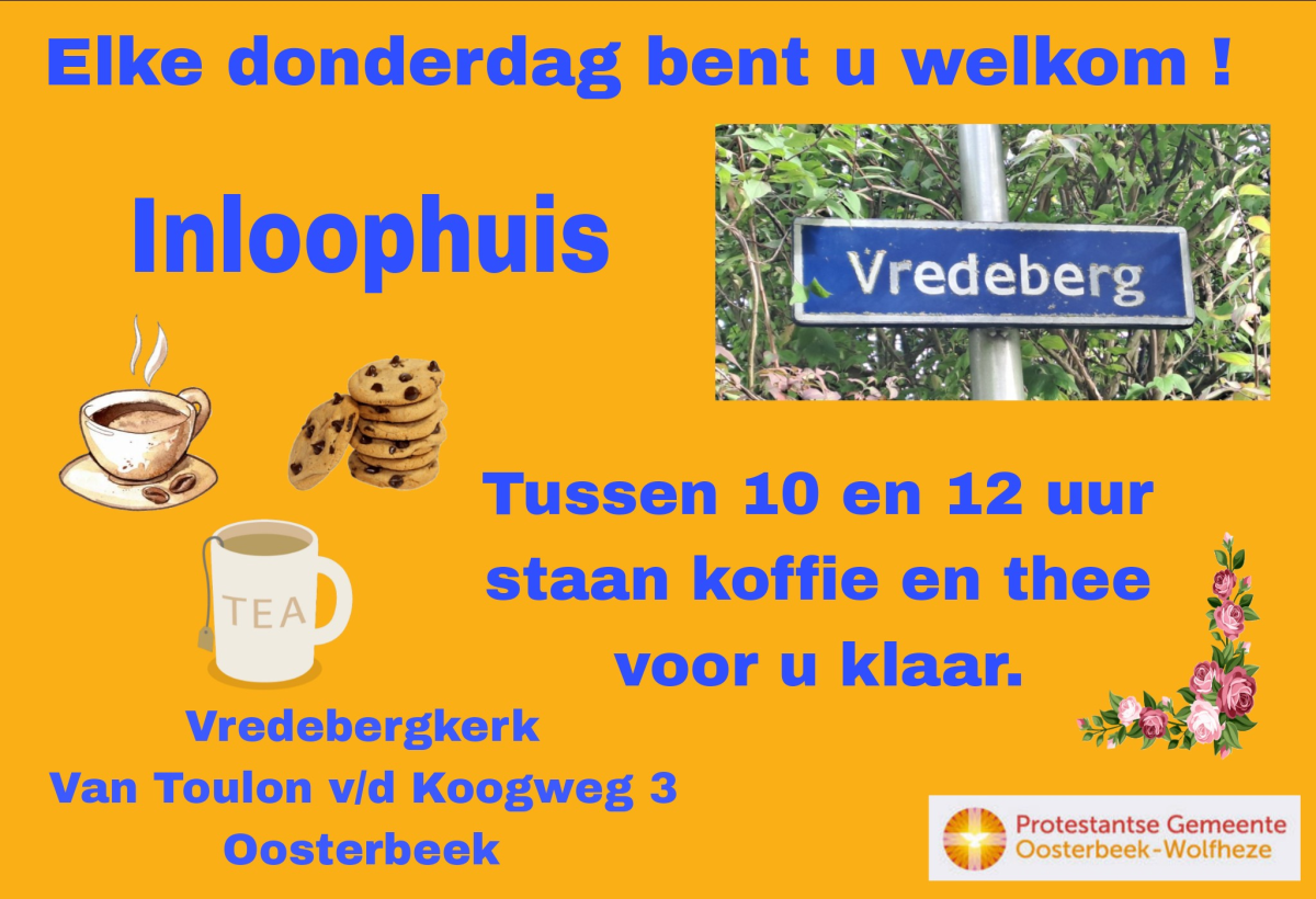 ![]() Welkom elke donderdagmorgen van 10.00 - 12.00 uur in het Inloophuis Vredeberg. | ||